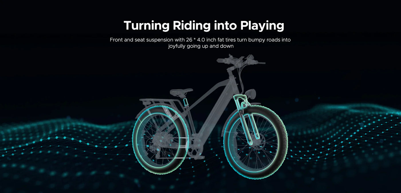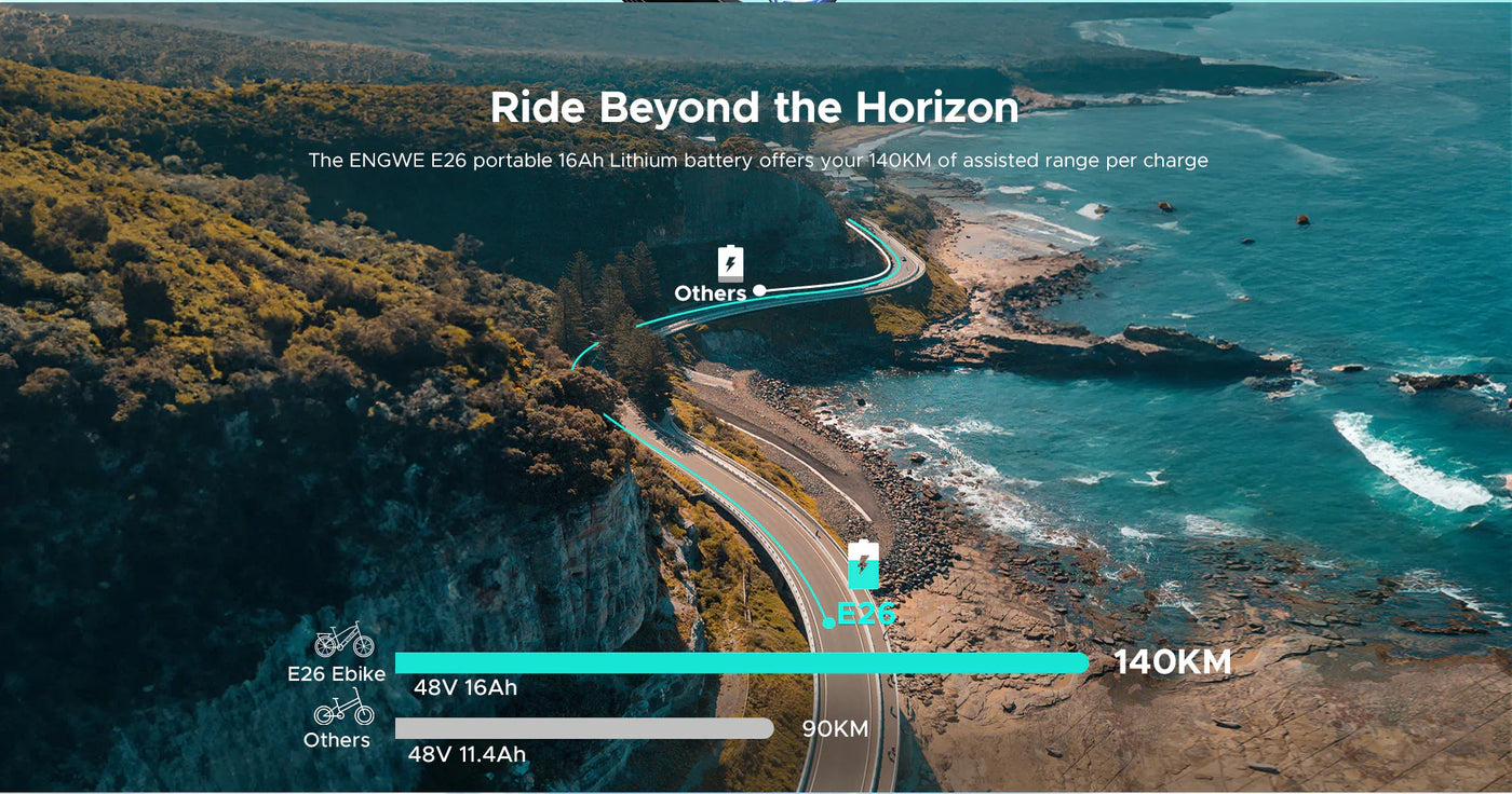 ENGWE E26 to wysokowydajny rower elektryczny z podwójnym zawieszeniem, charakteryzujący się doskonałą wydajnością i jakością.
