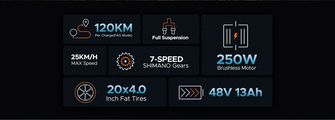 Składany rower elektryczny z podwójną amortyzacją, 250 W, zasięg 100 km, prędkość maksymalna 25 km/h